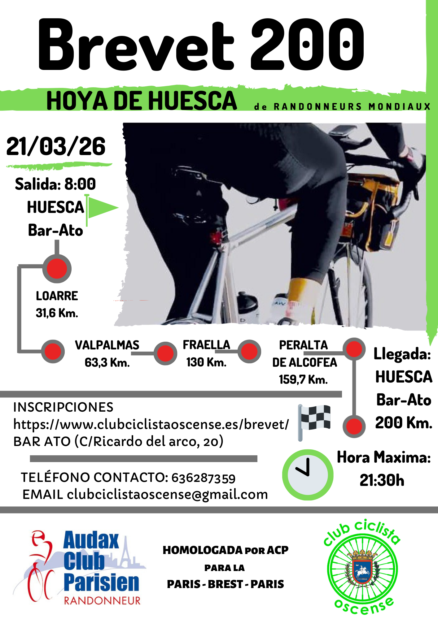 Primero de los Brevets 2025 organizados por el Club Ciclista Oscense que discurre en su mayor parte por la Hoya de Huesca aunque también atraviesa en menor medida las comarcas de Los Monegros y el Somontano.